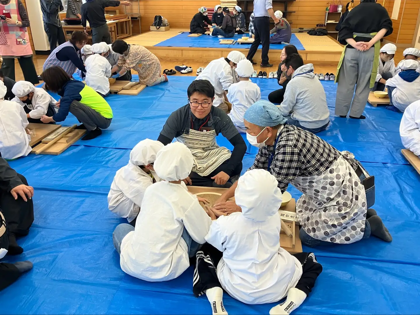11月5日(水)、地域貢献を目的に地元の小学生・地域住民と共同でそば打ちを行いました。